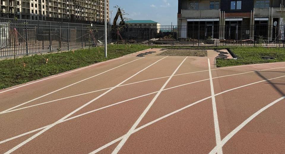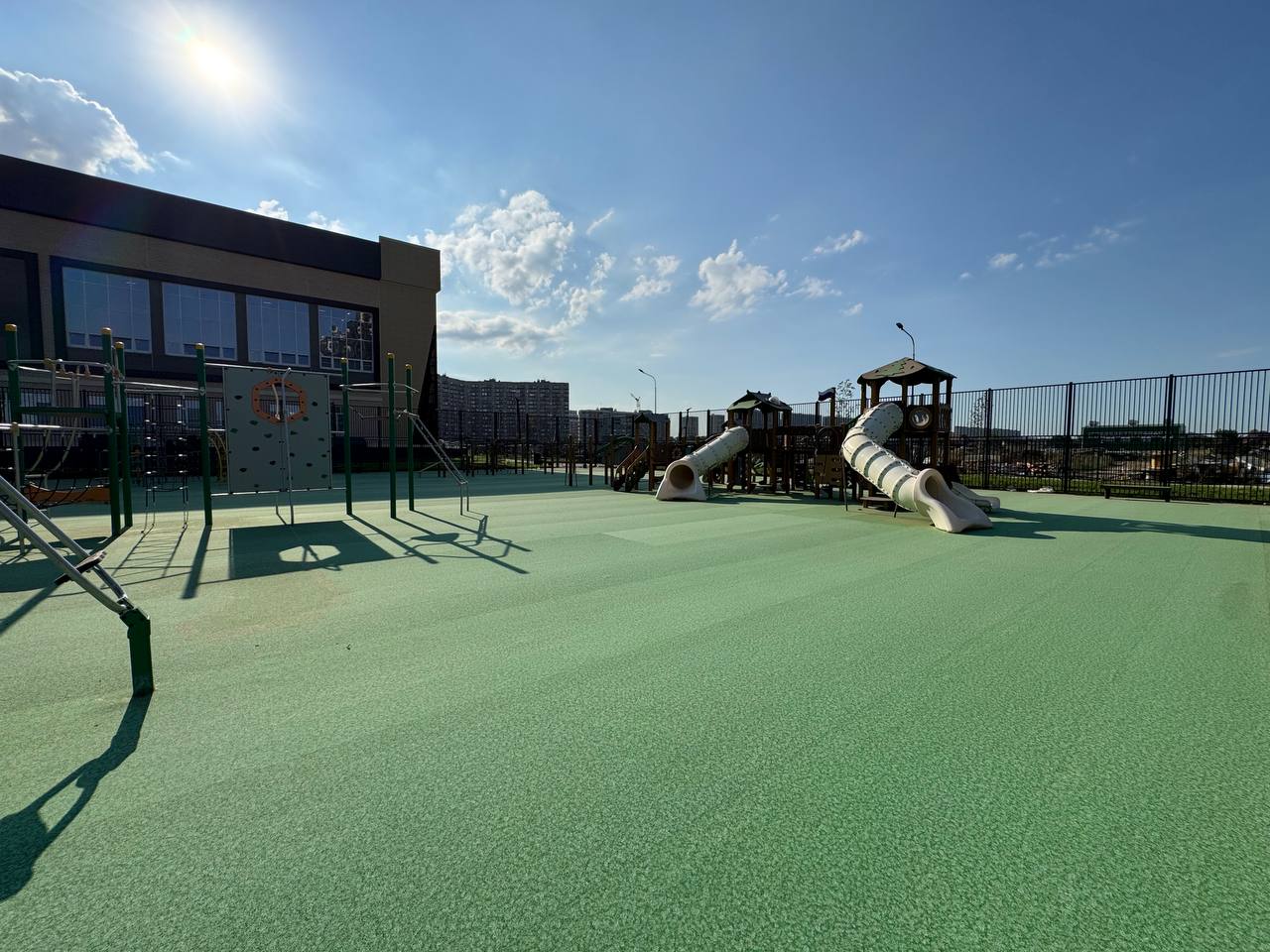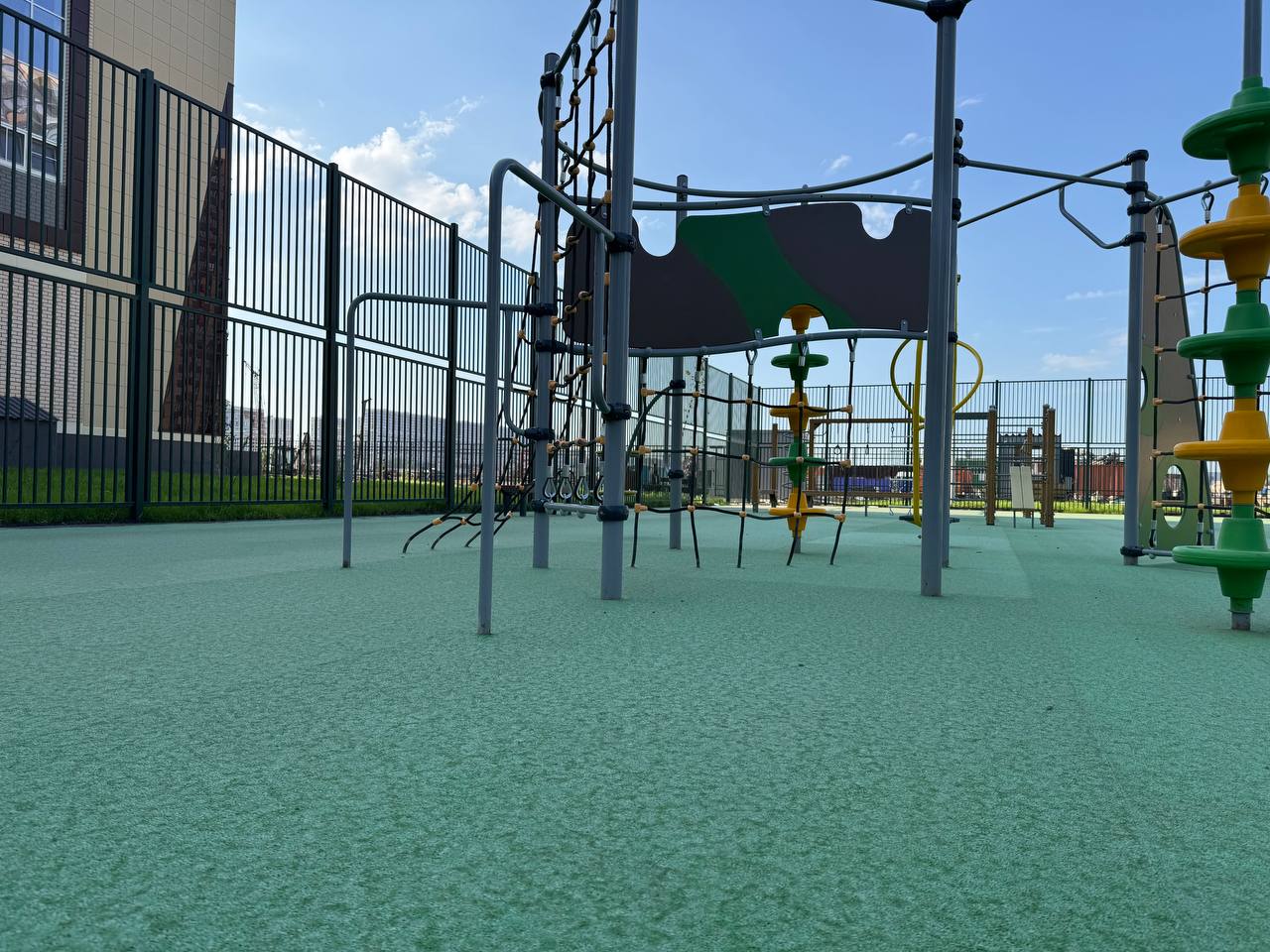 Так же выполнены работы по устройству рулонной спортивной резины на всех детских площадках школы
